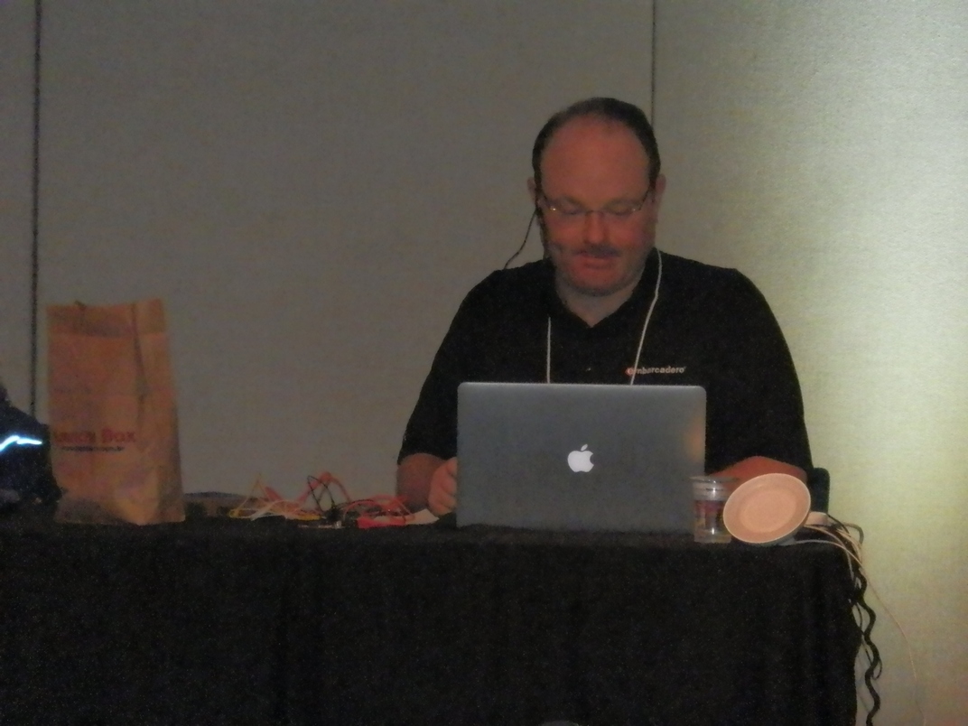 Ele simplesmente deixou todo mundo louco quando conectou aplicação Delphi lendo beacons à uma lâmpada, que recebia as informações da aplicação sobre a proximidade dos beacons e mudava a cor da luz emitida. Foi assim que ele resolveu mostrar um pouco de IoT (Internet das Cosias) funcionando.