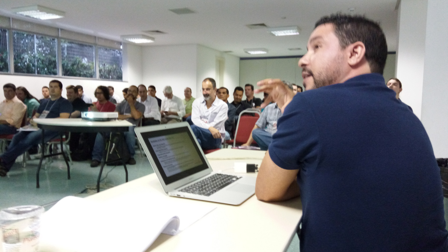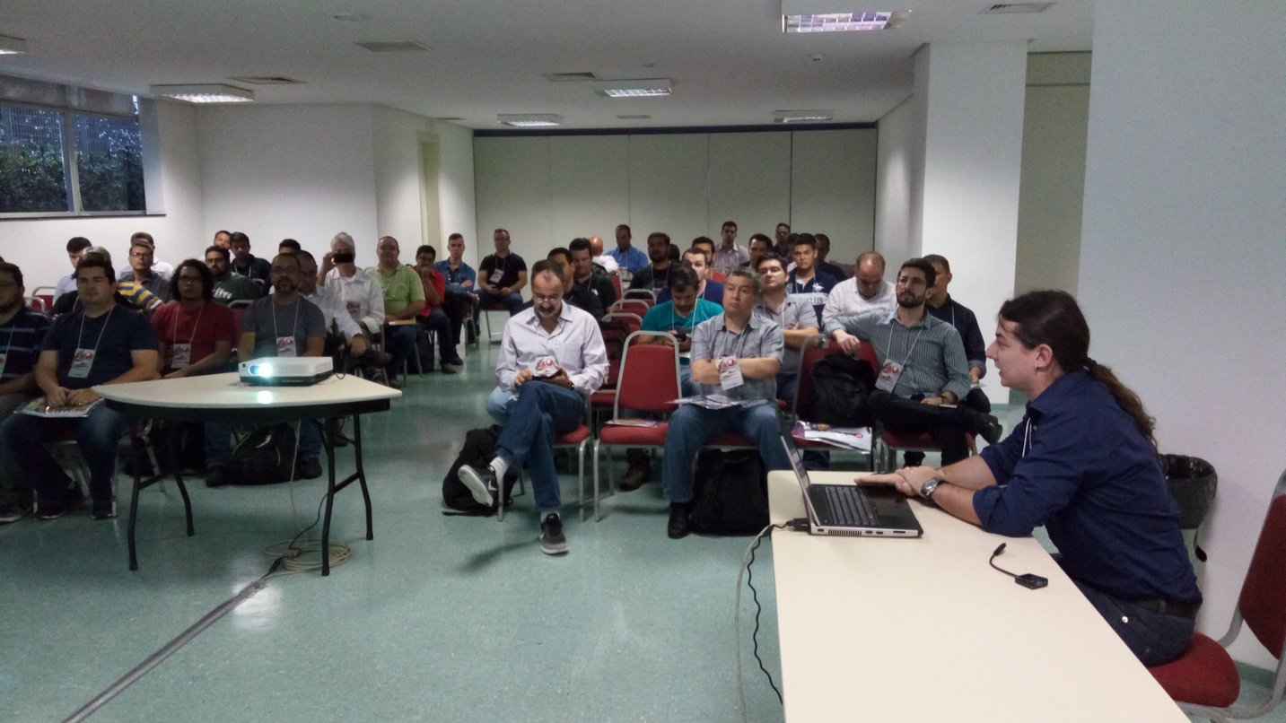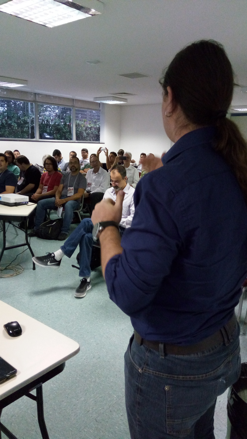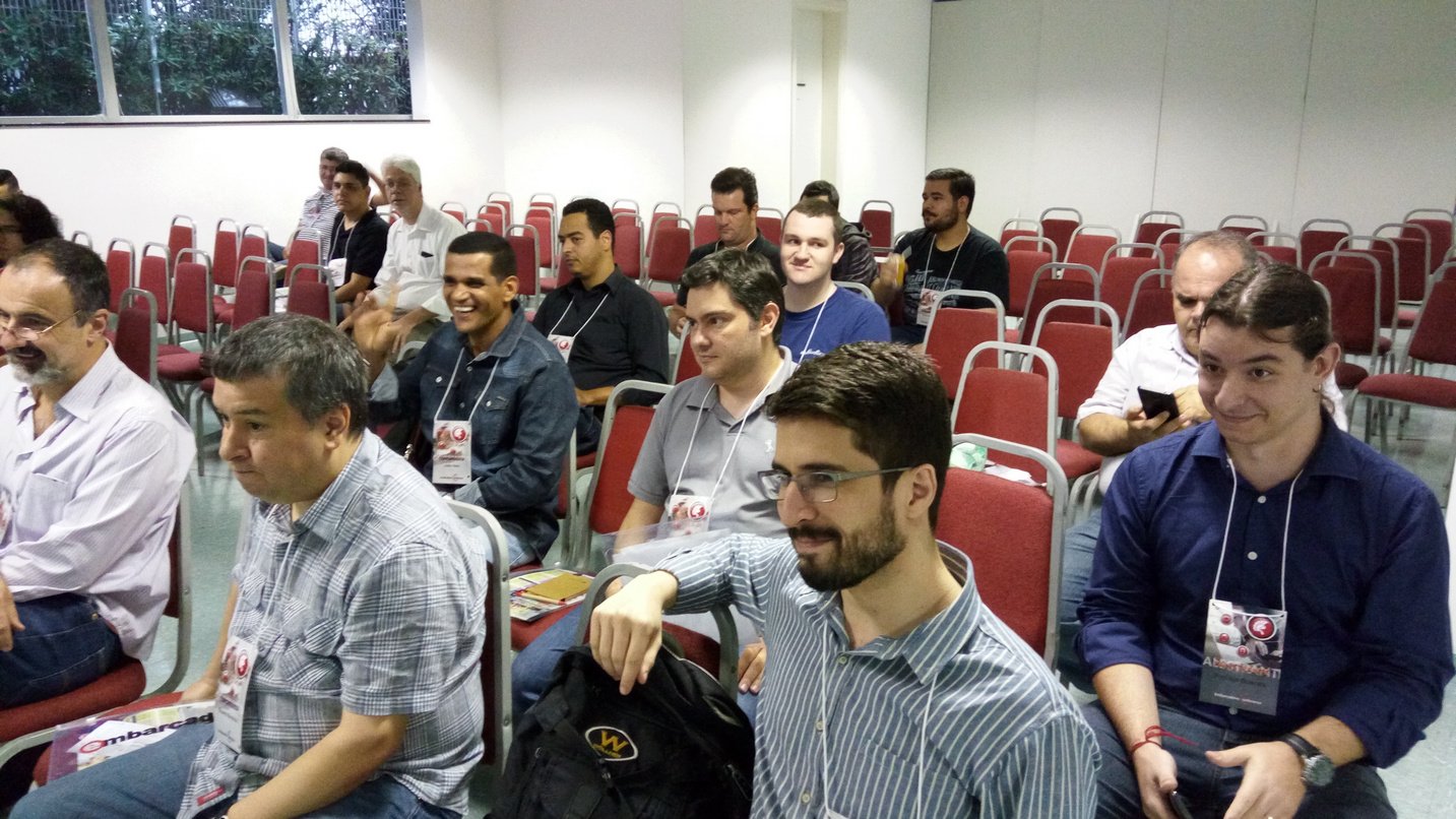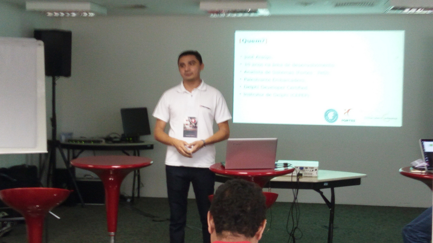 Assumi o compromisso de ser fotógrafo oficial da seção apresentada por Marcos Antônio Moreira e juntos fizemos uma grande constatação: a gente ri sempre mas também consegue passar uma pouco de coisa boa! A palestra de Marcão evidenciou o que já suspeitava, o pessoal conhece muito pouco os novos recursos adicionados ao Delphi, é como se a grande maioria só usasse os recursos da época do Delphi 7. Muitas “novidades” inexploradas.