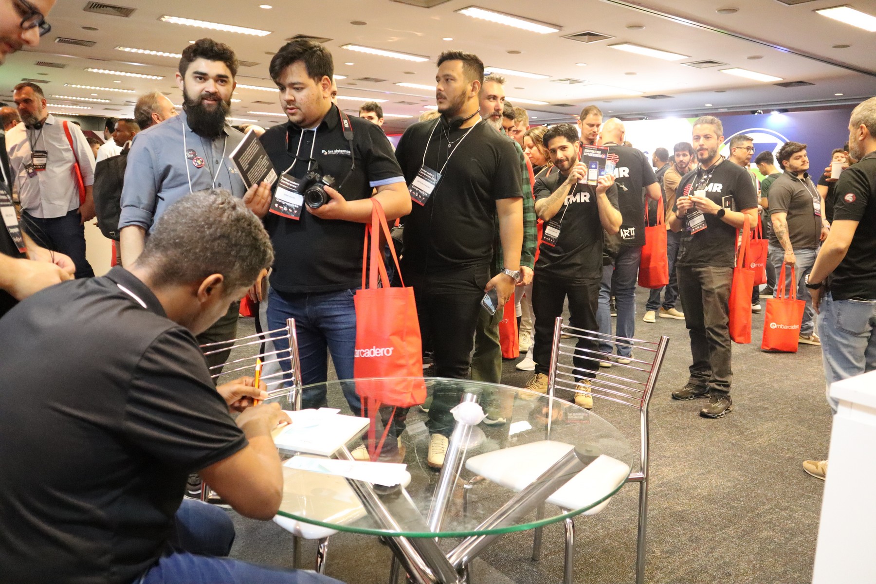 Outro momento marcante de minha participação ficou por conta dos amigos da TMR, que compraram um lote do meu livro, Desenvolvendo Apps em minutos, e presentearem colaboradores e clientes com exemplares que eram autografados por mim numa sessão de autógrafos promovida no estande da TMR durante o último coffee break do evento.