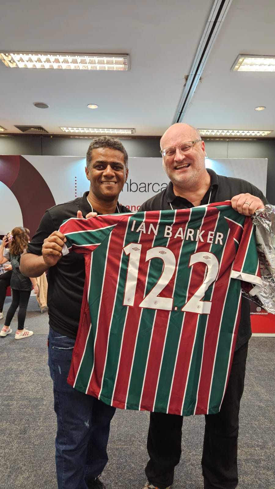 Falando em empolgação, eu estava pude notar o quanto os participantes do evento estavam entusiasmado com as apresentações e interações. Particularmente, fiquei muito feliz receber o Ian dando-lhe de presente uma camisa oficial do Fluminense, personalizada com seu nome e número 12.2 em alusão a nova release.
