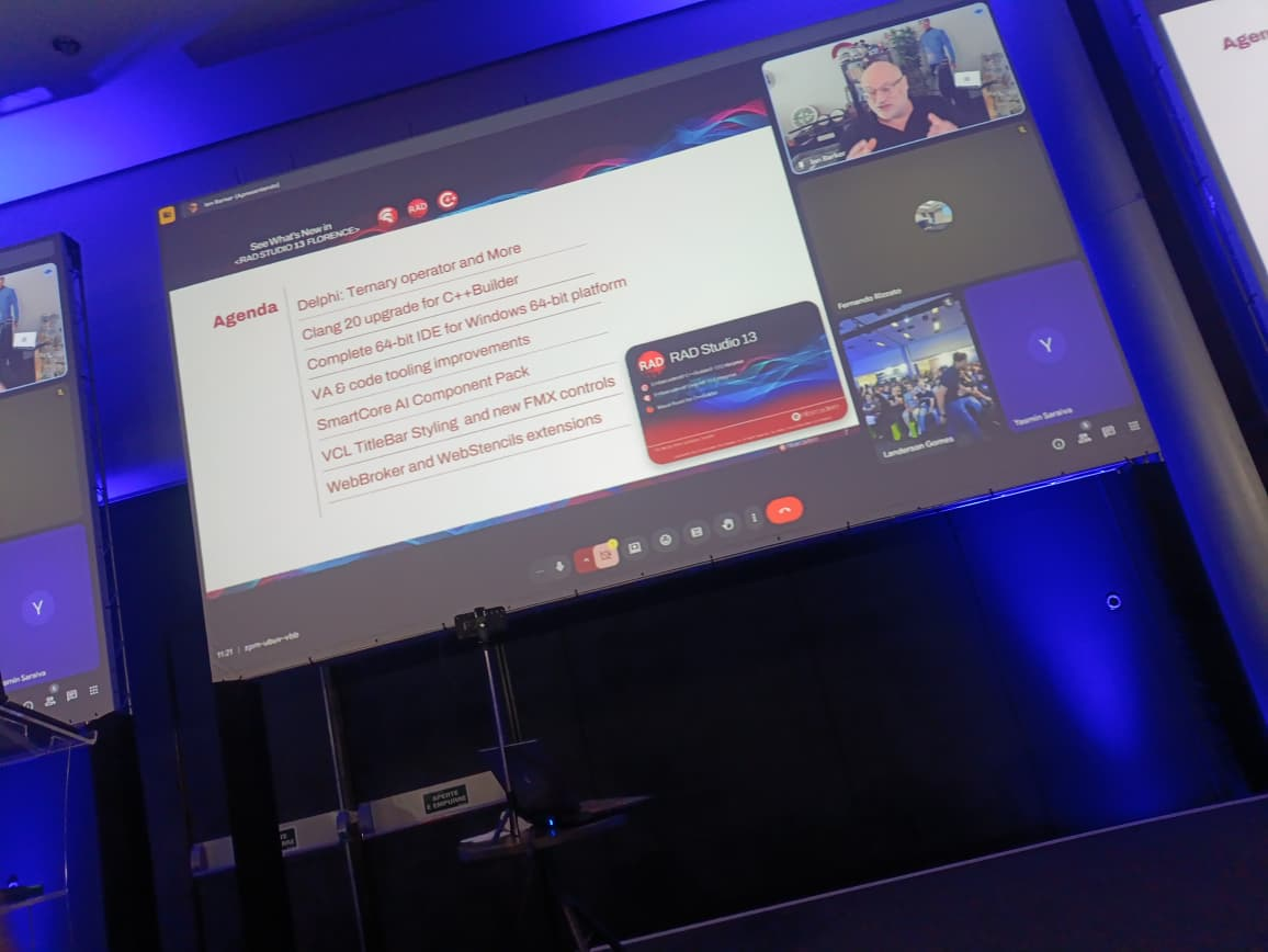 Este ano por questões burocráticas a apresentação do keynote, originalmente prevista no formato presencial contando com a presença de Ian Barker, Developer Advocate e Líder do Programa de MVP da Embarcadero, foi realizado de forma on-line. Ian trouxe novidades do RAD Studio 13 Florence, que a Embarcadero acabara de lançar no dia anterior.