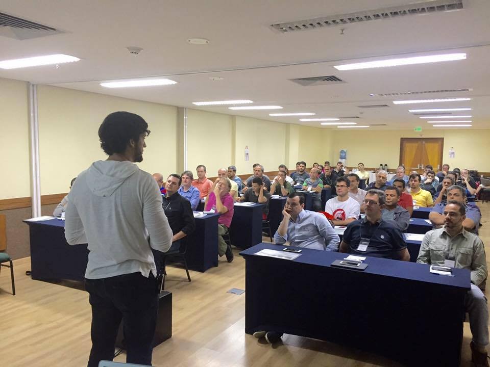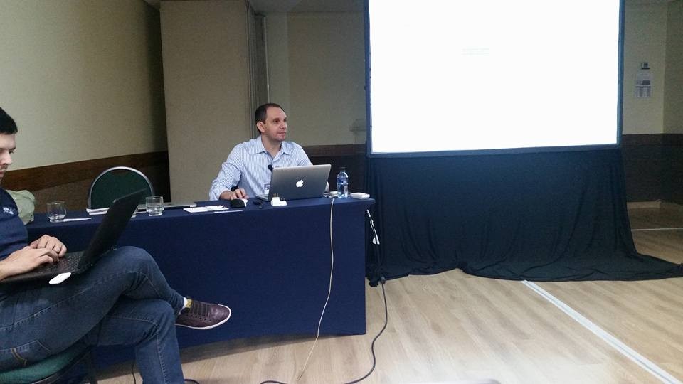 Como mencionei estou de folga do trabalho e fazendo visitas à família, assim sendo não fiquei no Hotel com a equipe.Cheguei um pouco mais tarde, mas ainda a tempo de assistir Laercio Guerço falando de IoT (Internet of Thing – Internet das Coisas).