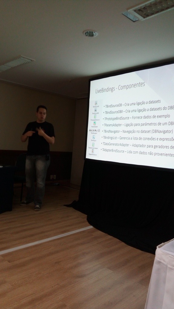 No domingo eu cheguei um pouco mais cedo e sairia mais cedo também, mas o ritmo continuava o mesmo… Rodrigo Mourão falou sobre a importância de ter suas aplicações preparadas para trabalharem orientadas a serviços, JSON e REST foram o foco. Kelver apresentou como configurar o Delphi para as plataformas móveis com o FireMonkey, e em seguida Eu apresentei uma palestra que chamo de o “Ingrediente secreto nas receitas do dia a dia”, na qual eu conto um pouco de como empregar o Delphi em pequenas soluções que agreguem valor a processos do cotidiano. Sorteio dos brindes foi antecipado, tivemos o Homem de todas as resposta compartilhando um projeto FireMonkey com a turma, que pode ver como juntar conhecimento com a ferramenta já reconhecidamente campeã em produtividade pode trazer um universo de possibilidades mais para perto de você.