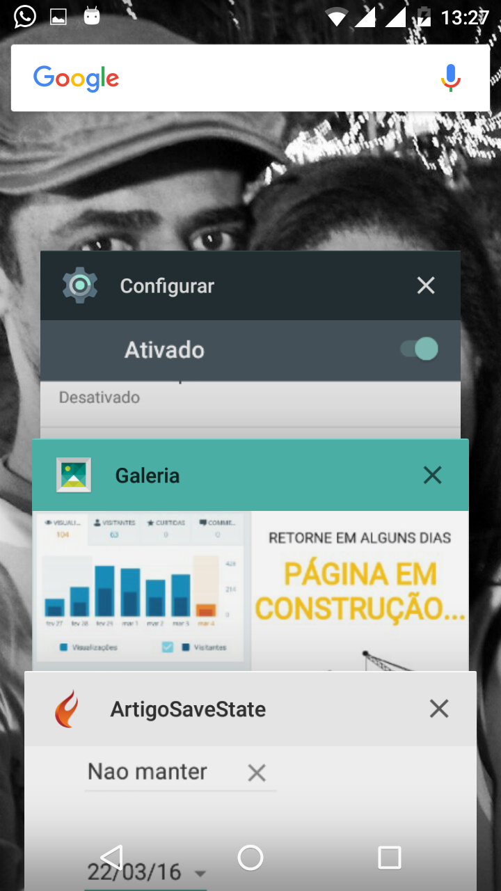 Nos dispositivos móveis, principalmente no caso do Android, quando um aplicativo é executado em segundo plano, o sistema operacional pode decidir por matar o processo. Isso se dá por alguns motivos, entre eles falta de memória ou a existência de muitos processos em execução. Ocorrendo isso, as informações inseridas pelo usuário não permanecem na aplicação.