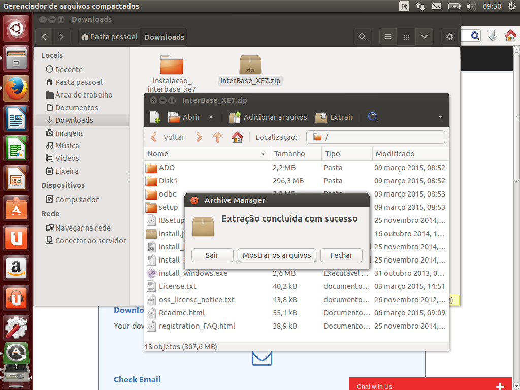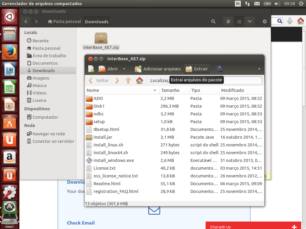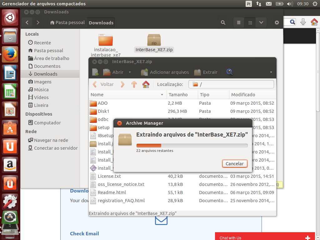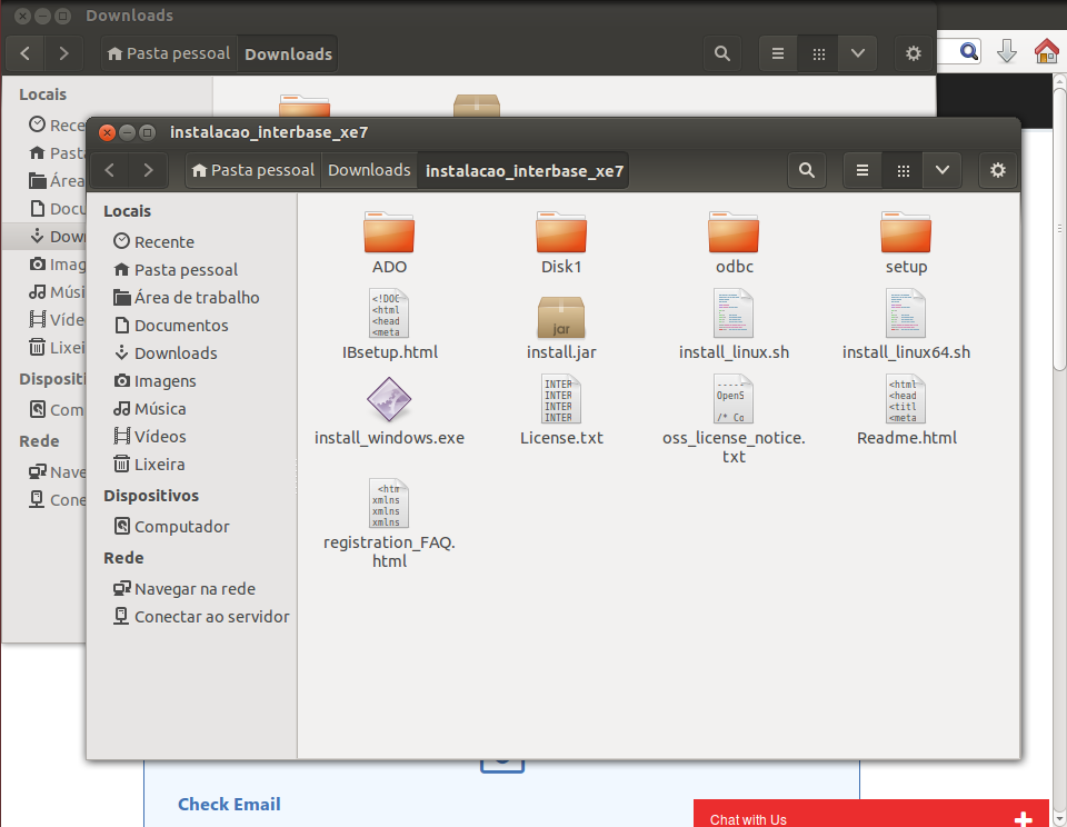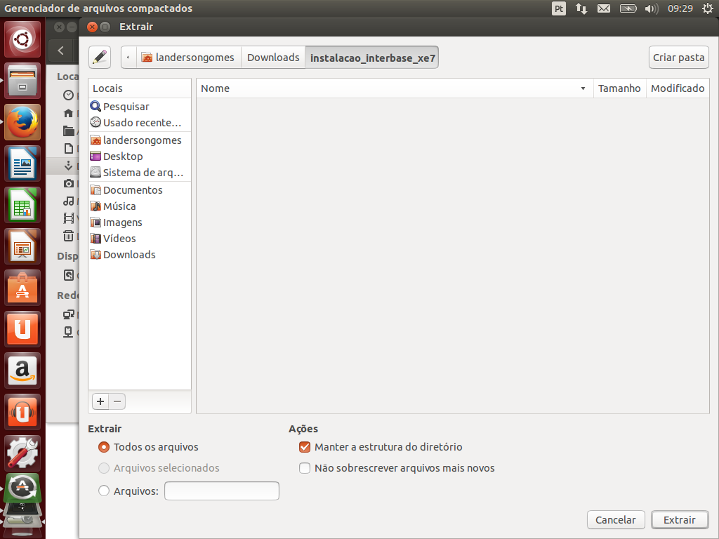 Note que fiz a extração do arquivo para um diretório chamado instalacao_interbase_xe7 dentro do diretório Downloads.
