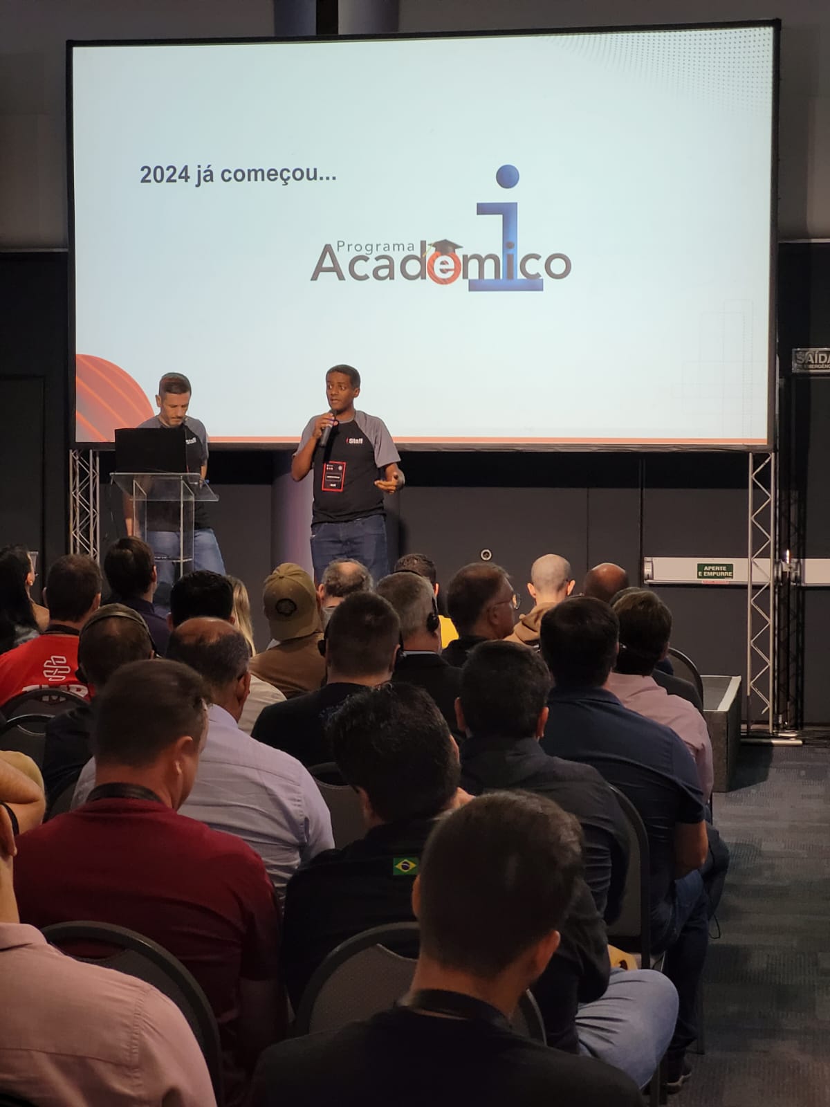 Mais tarde ainda retornei ao palco mais uma vez para o Keynote, no qual trouxemos algumas atividades que realizamos no Programa Acadêmico e também alguns projetos que pretendemos trazer em 2024.