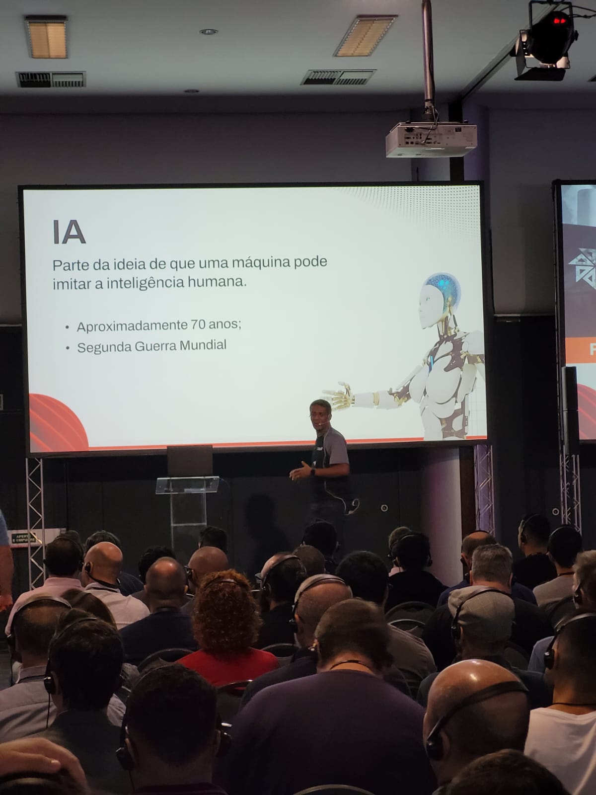 Em seguida, já era a hora da minha apresentação Engenharia dos Prompts: Aumentando a rentabilidade da utilização da IA.